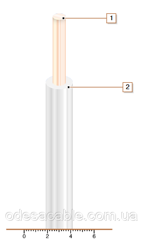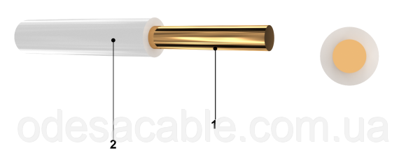 - 1. Струмопровідна мідна монолітна, 1 Клас гнучкості. Перетин жили 1,0 мм2,