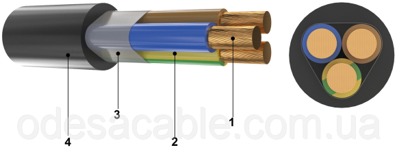 - 1. Мідна багатодротова (5-го класу гнучкості згідно ДСТУ EN 60228 (IEC 60228)) струмопровідна жила,